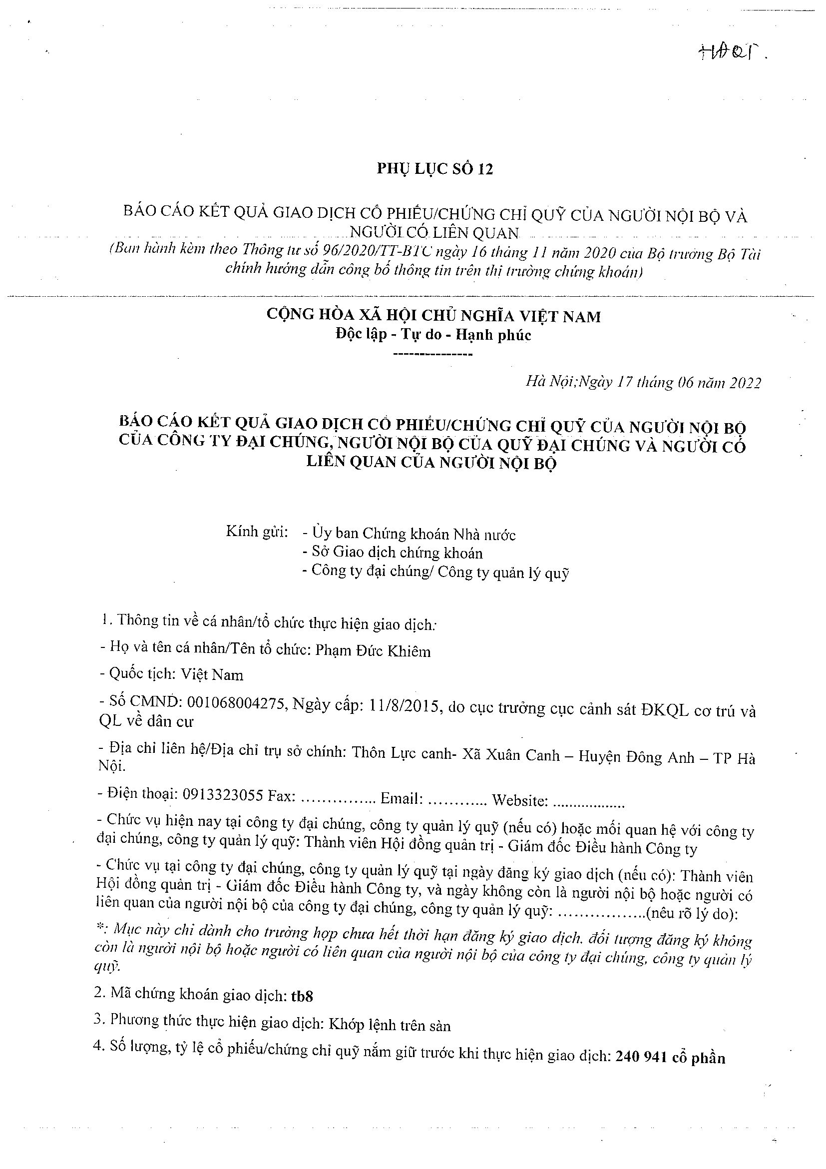 CBTT ( báo cáo tình hình quản trị cty 6 tháng đầu năm 2022 )