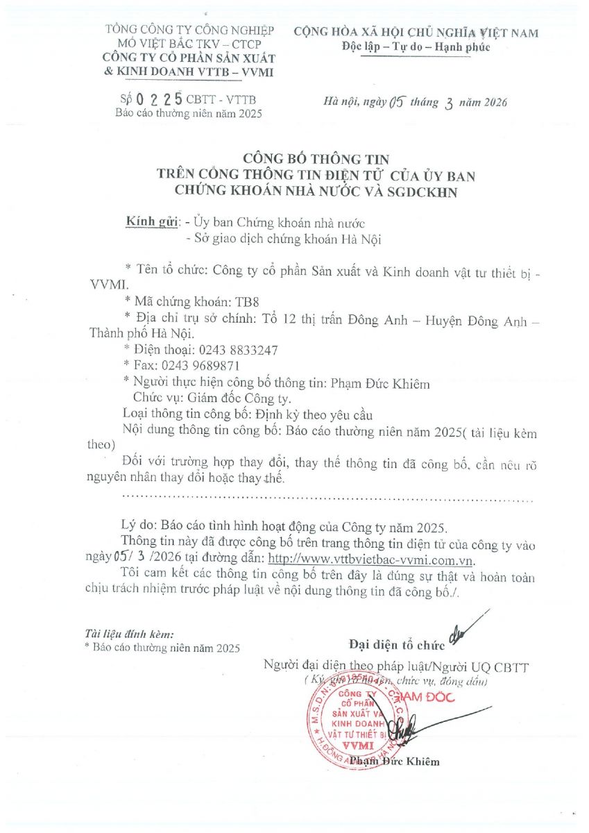 CBTT ( Ông VƯƠNG KHẮC TUẤN- TP KHVTTT được bổ nhiệm giữ chức vụ Phó GIám Đốc Cty CP SX và KD VTTB - VVMI kể từ ngày 16/8/2022 )