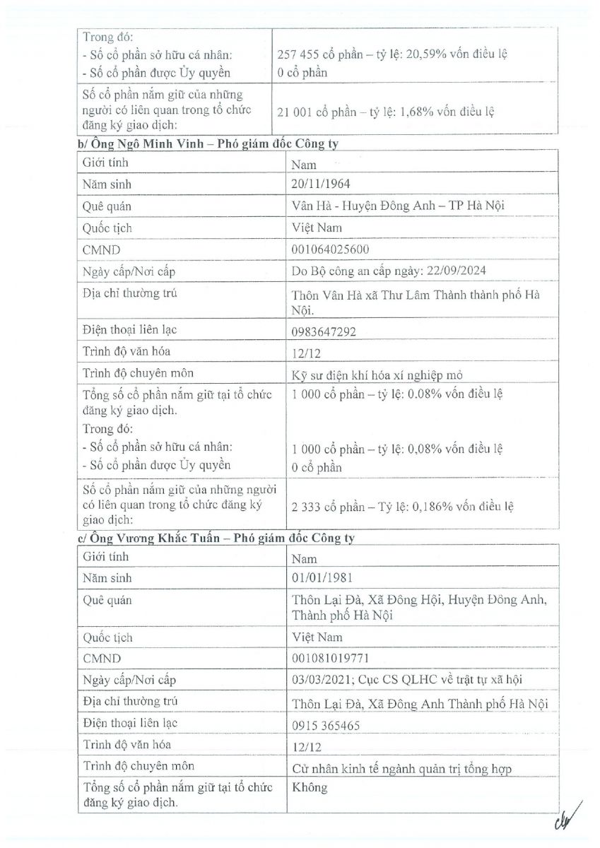 CBTT trong thời hạn 24 giờ ( Không kéo dài thời gian giữ chức vụ PGĐ Cty đối với Ô Ngô Minh Vinh kể từ ngày 21/7/2025)