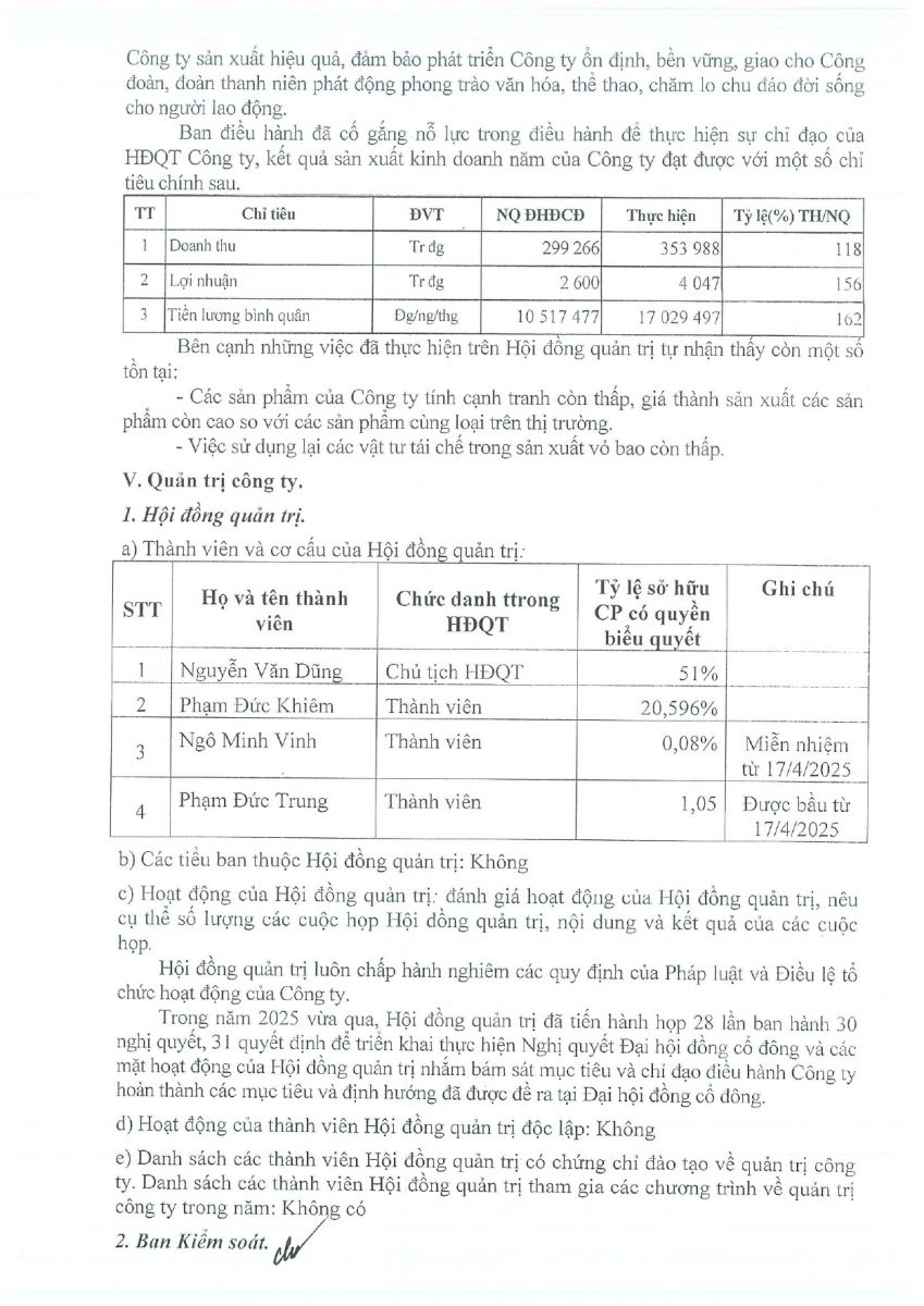 Công bố thông tin báo cáo tình hình quản trị Công ty năm 2025