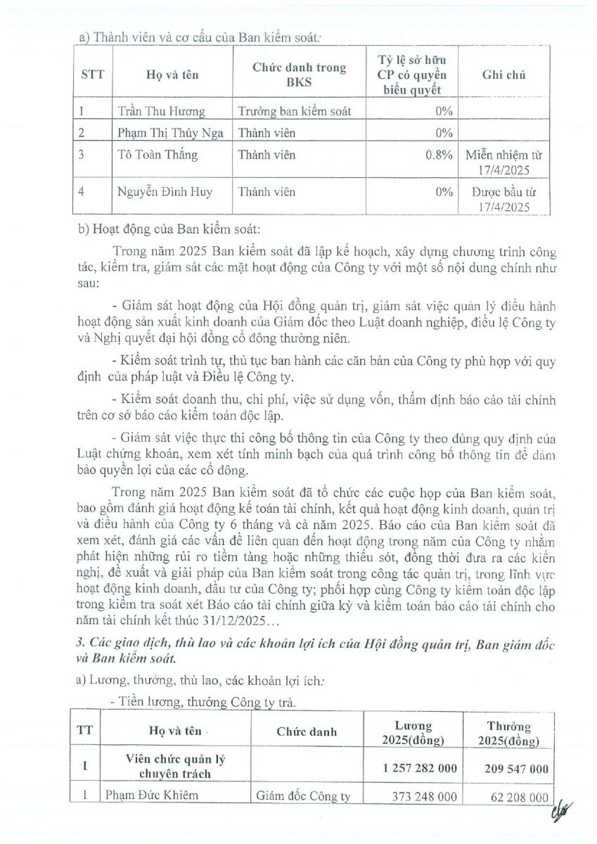 CBTT báo cáo tình hình quản trị công ty 6 tháng đầu năm 2025