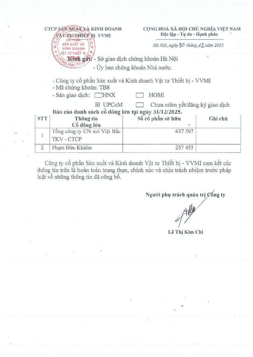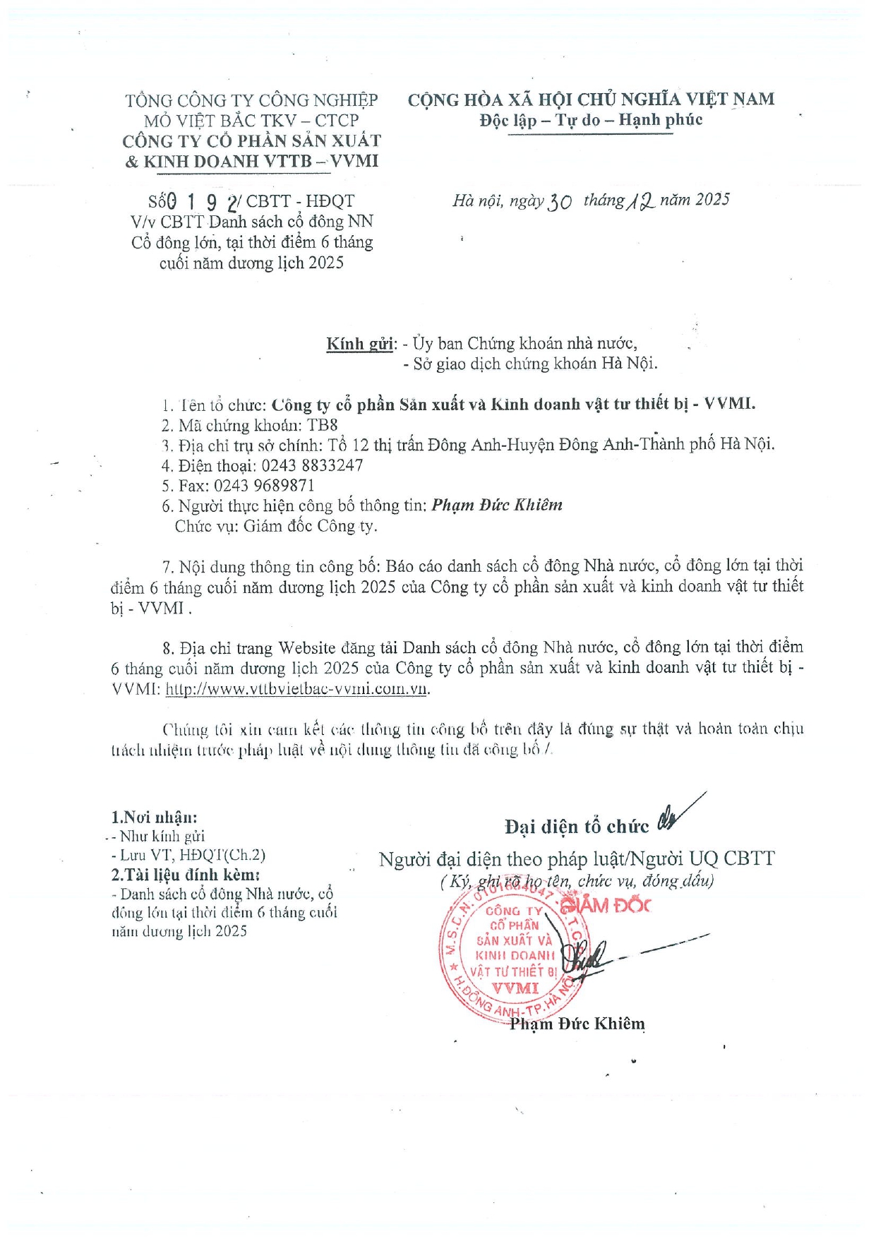 CBTT Danh sách cổ đông NN Cổ đông lớn tại thời điểm 6 tháng đầu năm dương lịch 2025 CBTT Danh sách cổ đông NN Cổ đông lớn tại thời điểm 6 tháng đầu năm dương lịch 2025