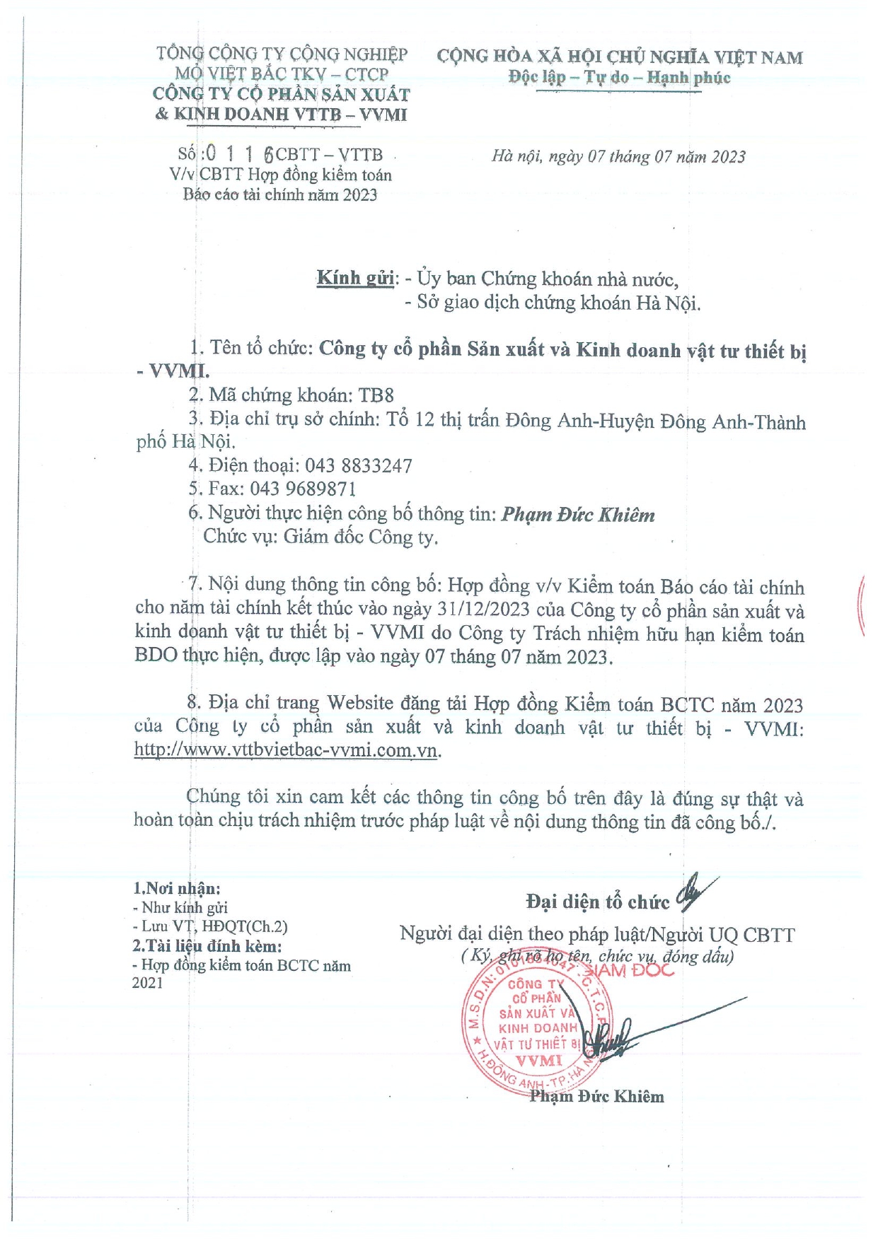 CBTT ( Hợp đồng kiểm toán báo cáo tài chính năm 2023 )