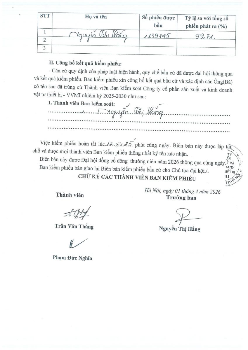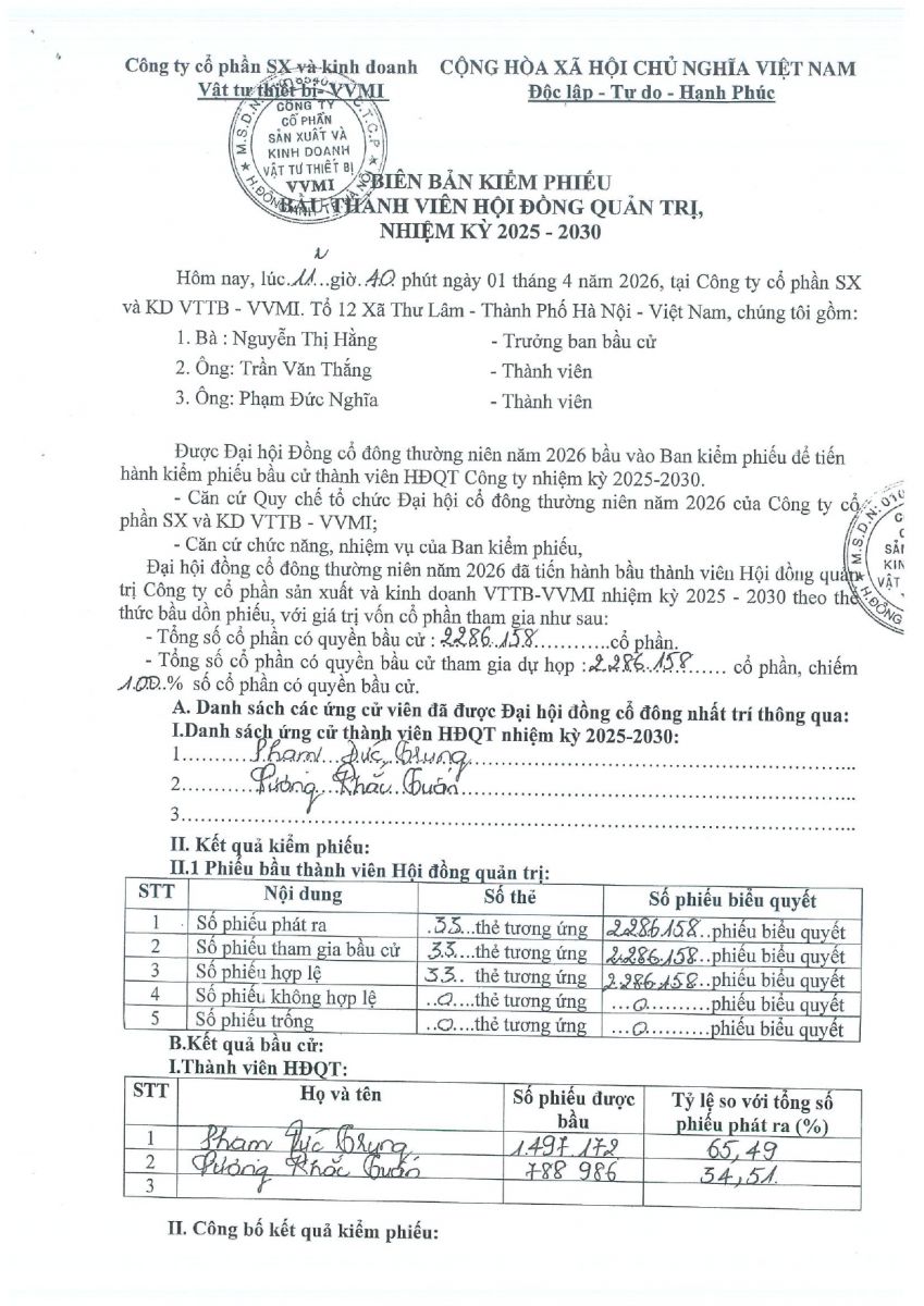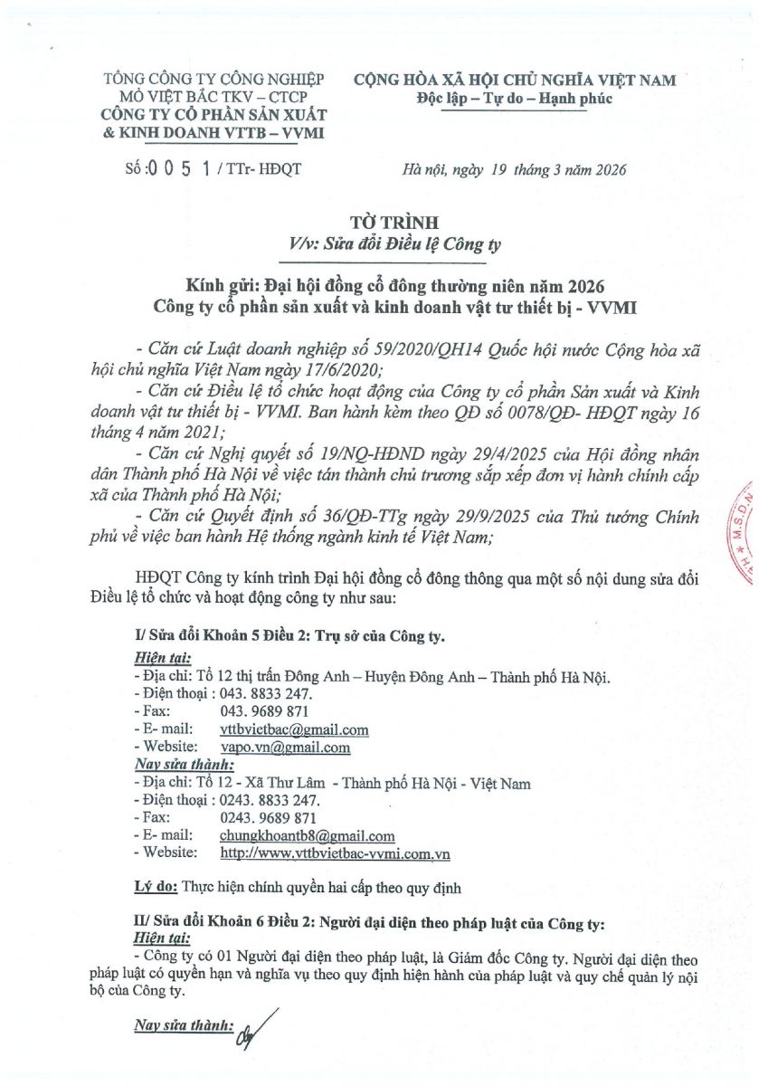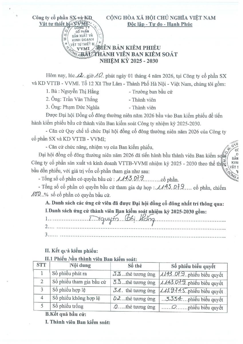 CBTT ( Ông VƯƠNG KHẮC TUẤN- TP KHVTTT được bổ nhiệm giữ chức vụ Phó GIám Đốc Cty CP SX và KD VTTB - VVMI kể từ ngày 16/8/2022 )