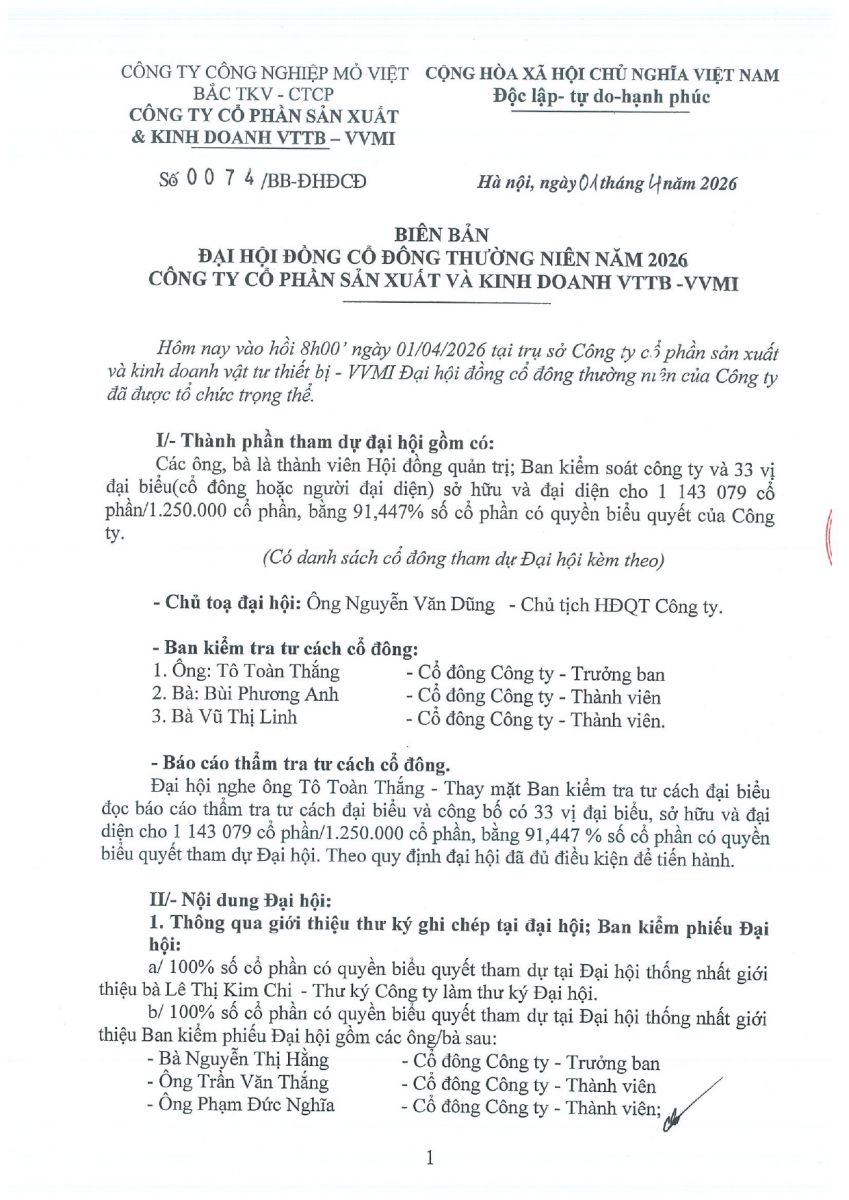 Biên bản - Họp đại hội cổ đông thường niên