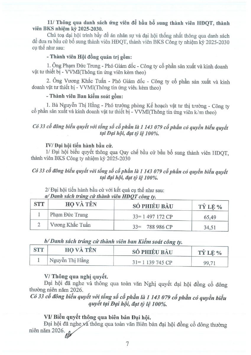 QC bầu cử bổ sung TV HĐQT