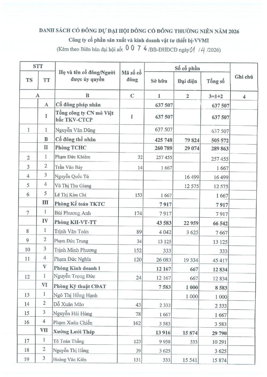 Kính gửi quý cổ đông Dach sách tổng hợp người sở hữu chúng khoán - TT Lưu ký và bù trừ CK VN ( VSDC) chốt tại ngày 14/2/2025