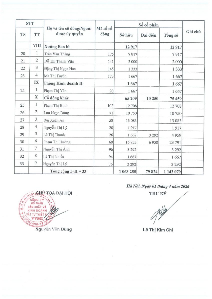 CBTT ( Kính gửi Quý cổ đông Danh sách tổng hợp người sở hữu chứng khoán thực hiện quyền bỏ phiếu )