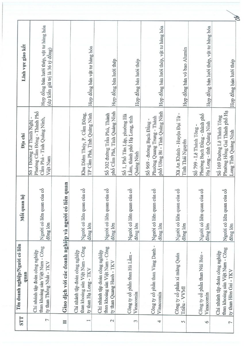 CBTT Danh sách cổ đông NN cố đông lớn, tại thời điểm 6 tháng cuối năm dương lịch 2024