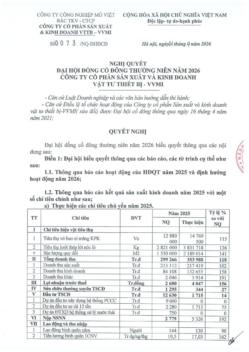 Nghị quyết đại hội cổ đông thường niên năm 2017