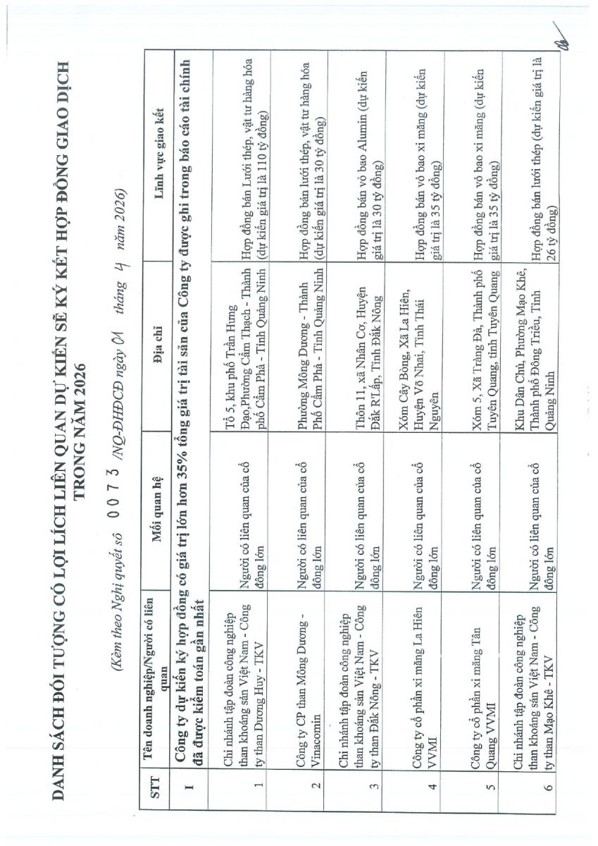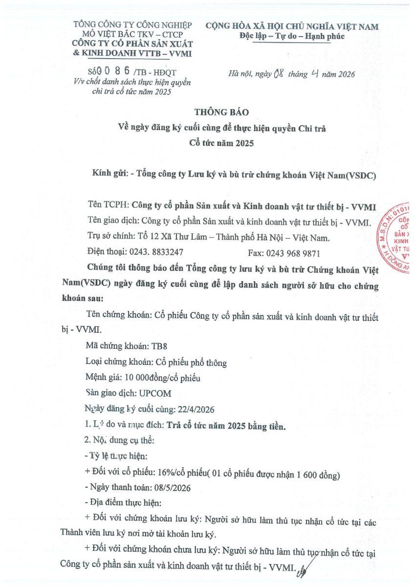 CBTT Chốt danh sách thực hiện quyền tham gia dự ĐH ĐCĐ TN Năm 2026