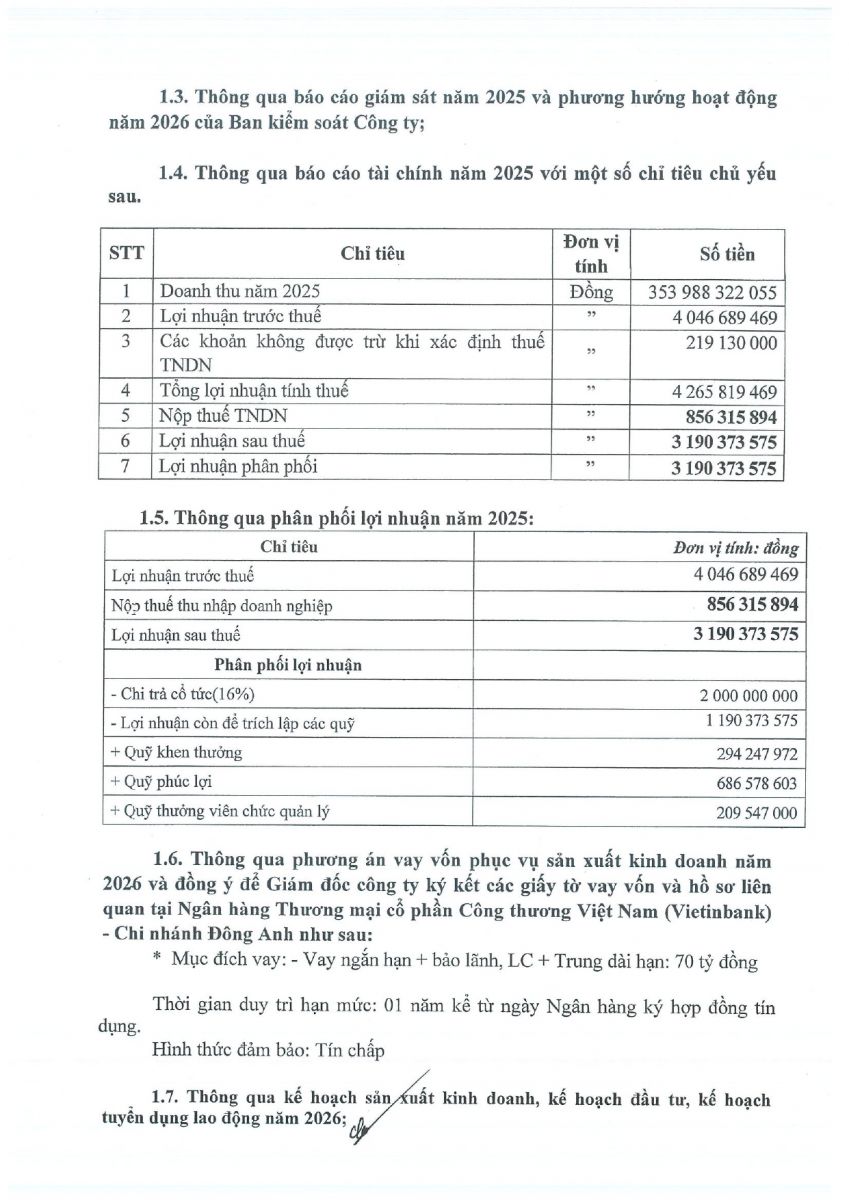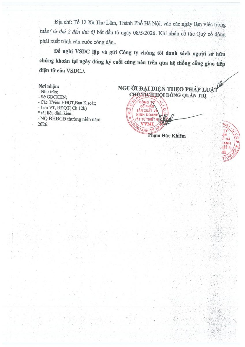 CBTT Thông báo mời tham dự Đại hội đồng cổ đông thường niên năm 2026 ( có tài liệu kèm theo)