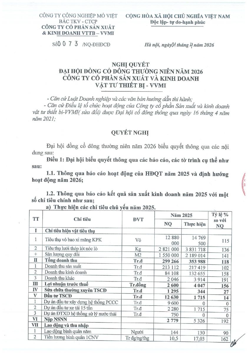 Nghị quyết Đại hội đồng cổ đông thường niên năm 2018