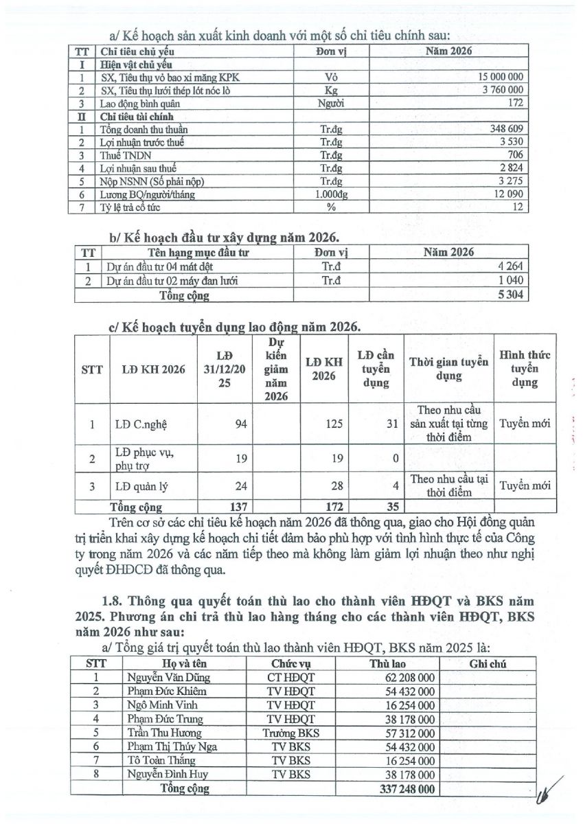 NGHỊ QUYẾT ĐẠI HỘI ĐỒNG CỔ ĐÔNG THƯỜNG NIÊN NĂM 2016