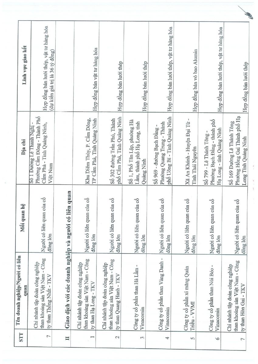 CBTT Danh sách cổ đông NN cố đông lớn, tại thời điểm 6 tháng cuối năm dương lịch 2024