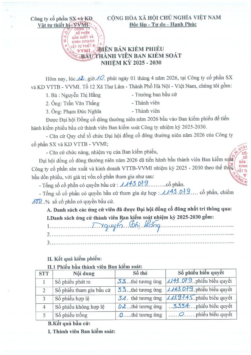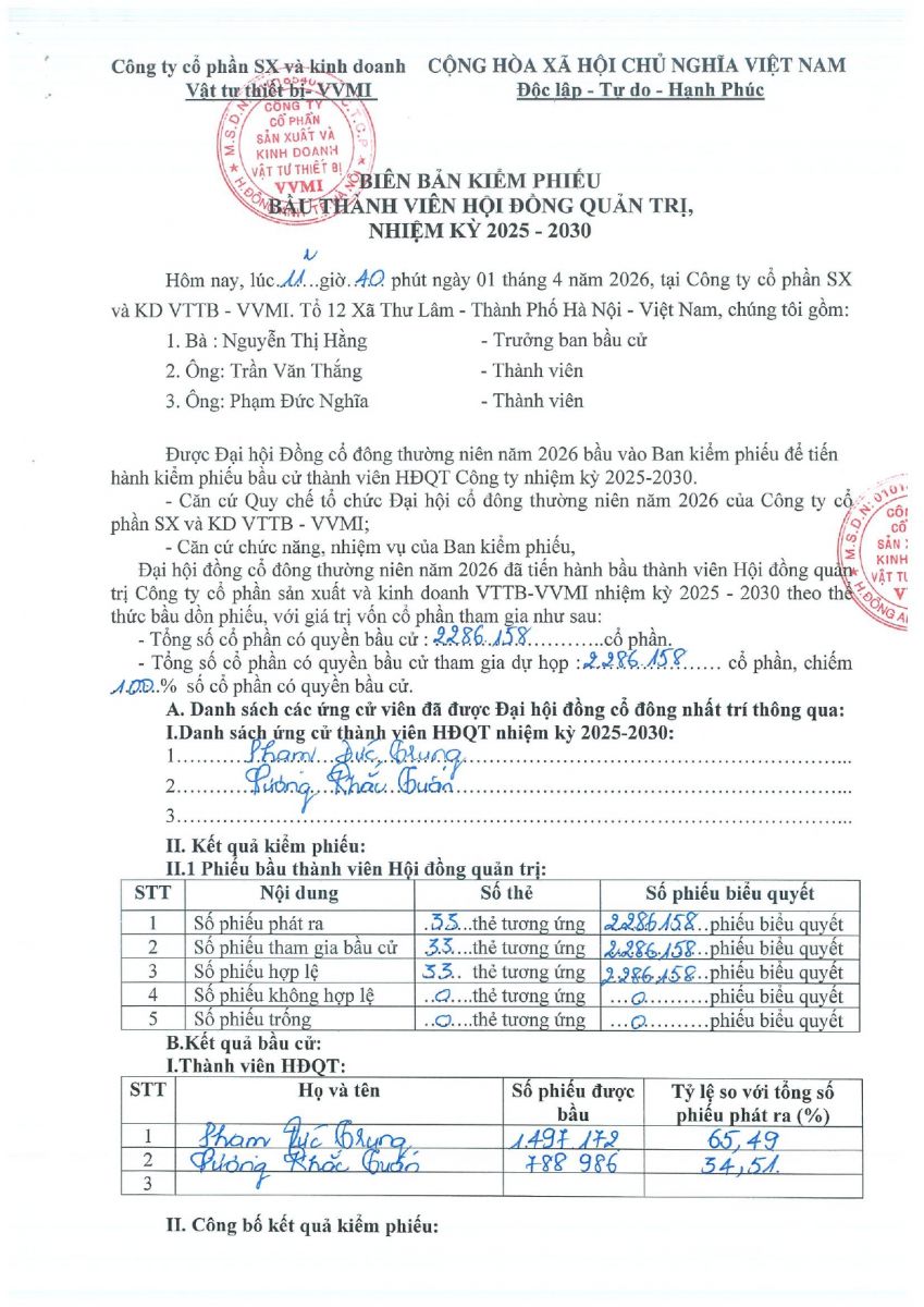 QC bầu cử bổ sung TV HĐQT