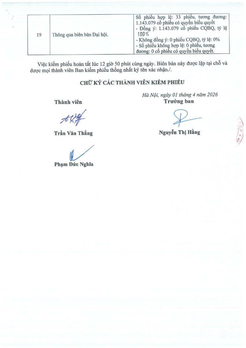 Biên bản Đại hội đồng cổ đông thường niên năm 2018