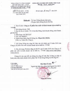 Công bố thông tin ( Báo cáo thường niên năm 2018 + Báo cáo tình hình hoạt động của Cty năm 2018 )