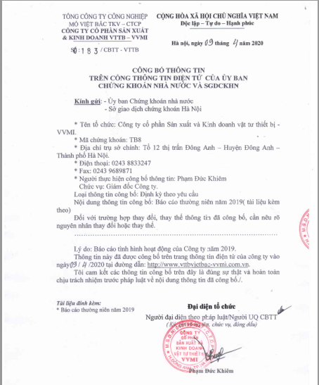 Công bố thông tin :Báo cáo thường niên năm 2019 ( có tài liệu kèm theo )