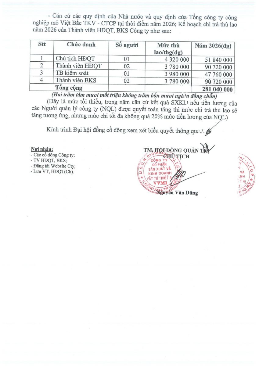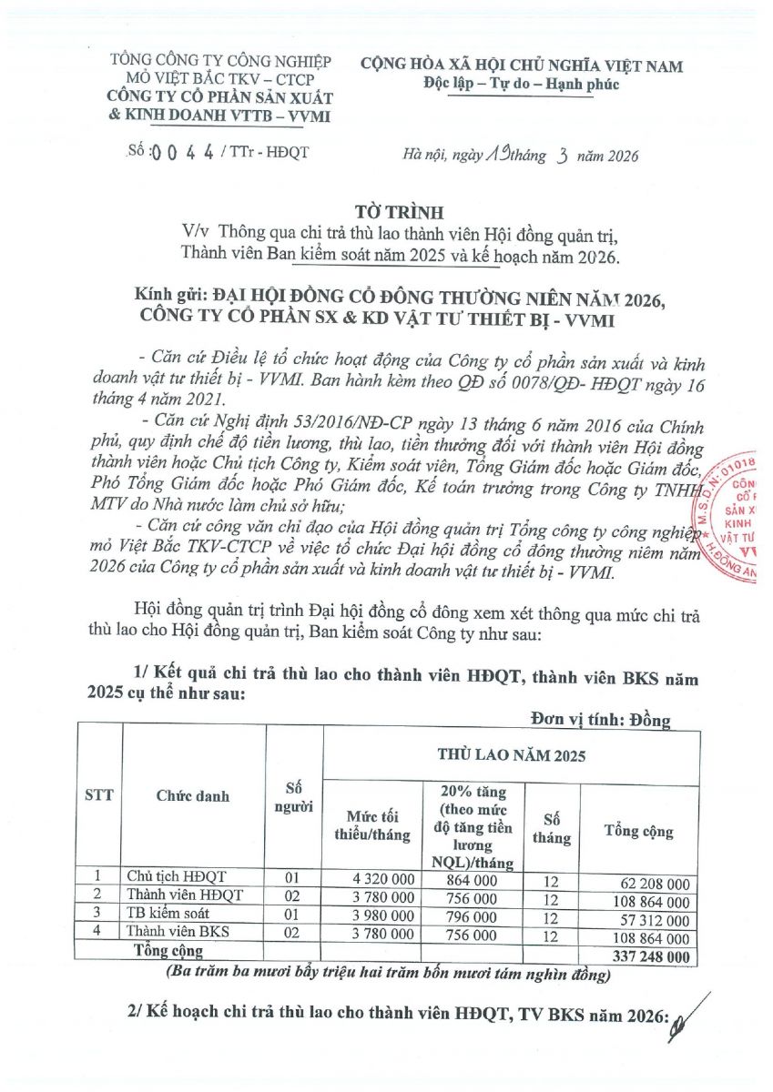 Tờ trình chi trả thù lao cho TV HĐQT
