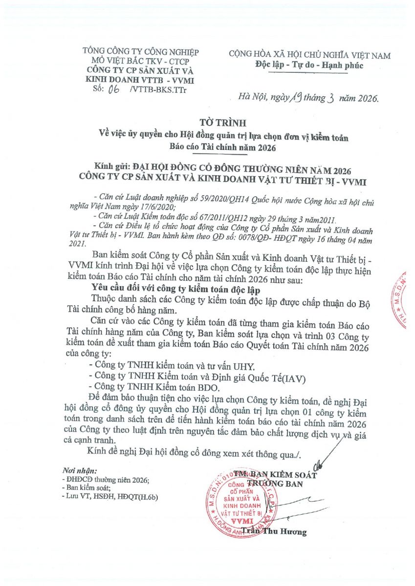 Tờ trình lựa chọn cty kiểm toán