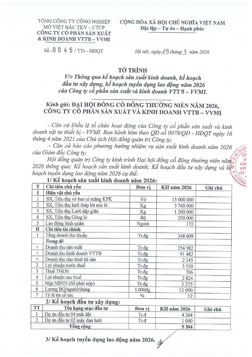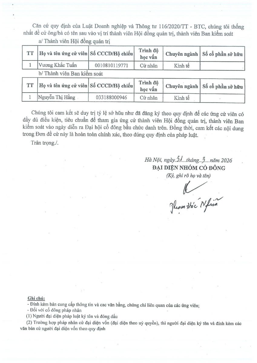 CBTT Thông báo mời tham dự Đại hội đồng cổ đông thường niên năm 2026 ( có tài liệu kèm theo)