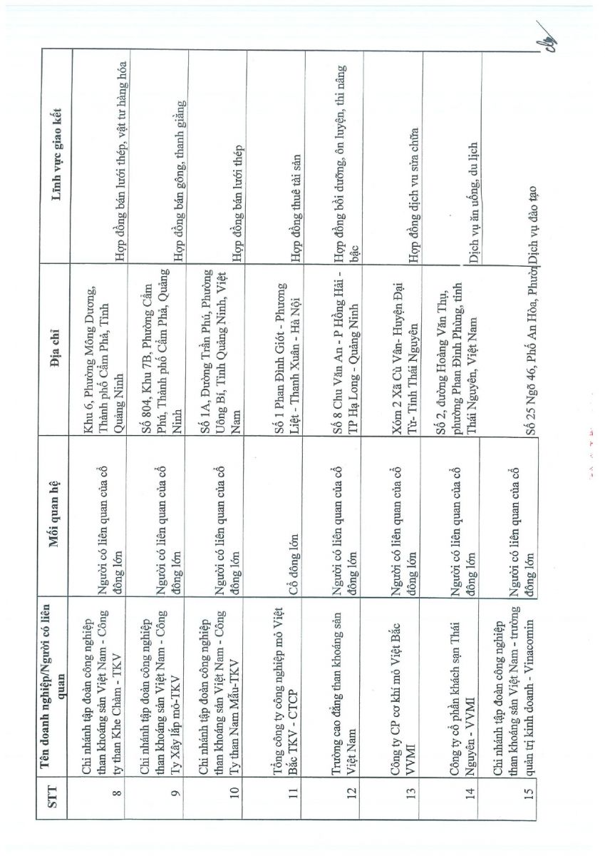 CBTT Danh sách cổ đông NN cố đông lớn, tại thời điểm 6 tháng cuối năm dương lịch 2024