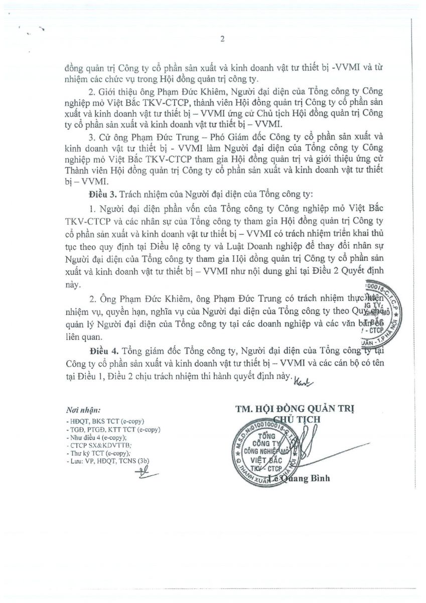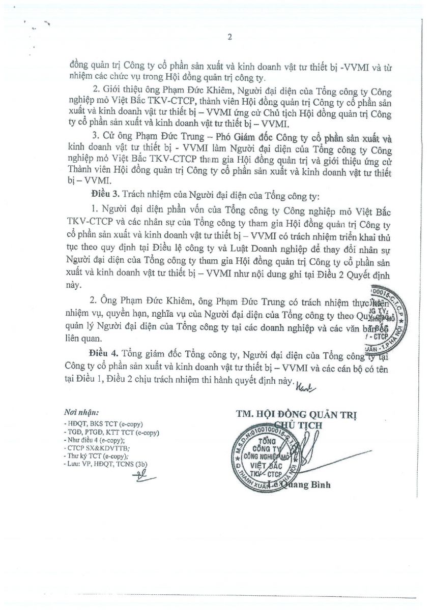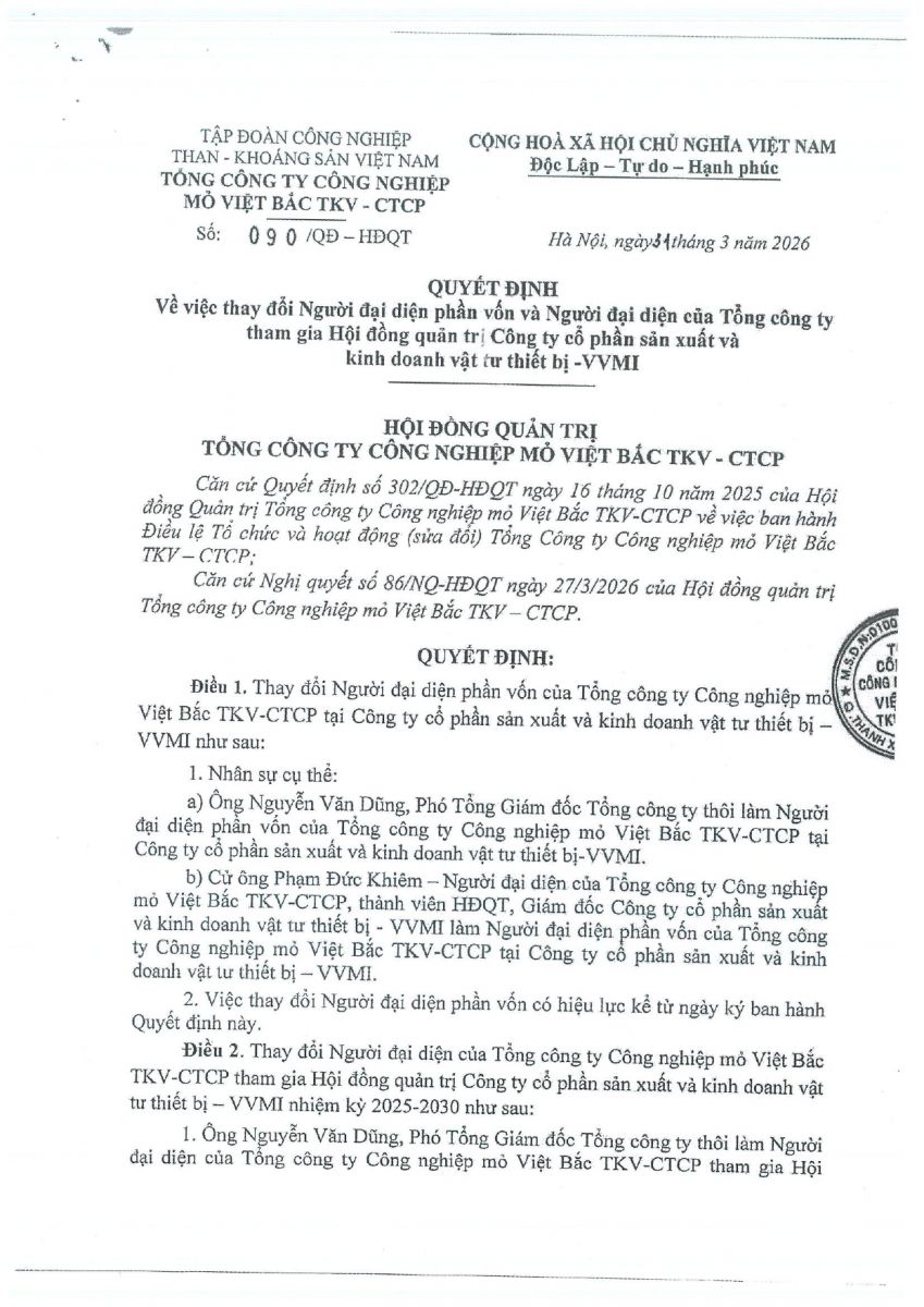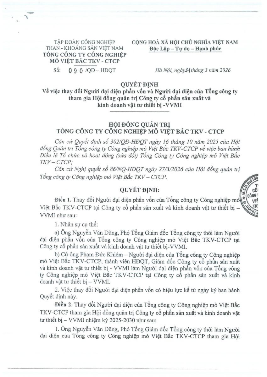 QĐ V/v Thay đổi người đại diện tham gia HĐQT, BKS