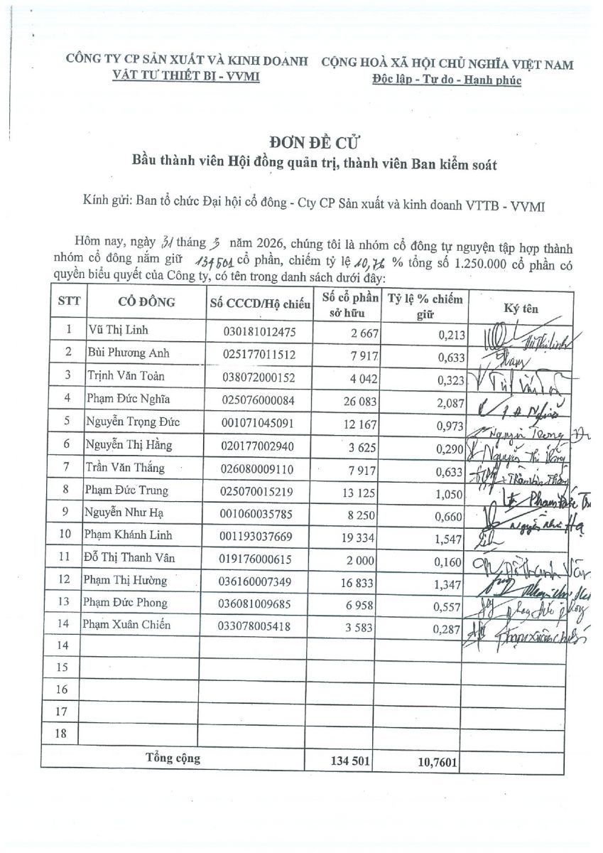 CBTT ( Kính gửi Quý cổ đông Danh sách tổng hợp người sở hữu chứng khoán thực hiện quyền bỏ phiếu )