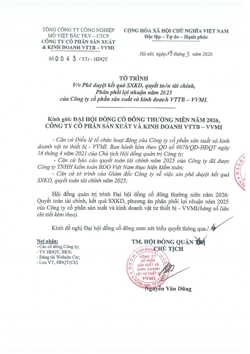 CBTT Thông báo mời tham dự Đại hội đồng cổ đông thường niên năm 2026 ( có tài liệu kèm theo)
