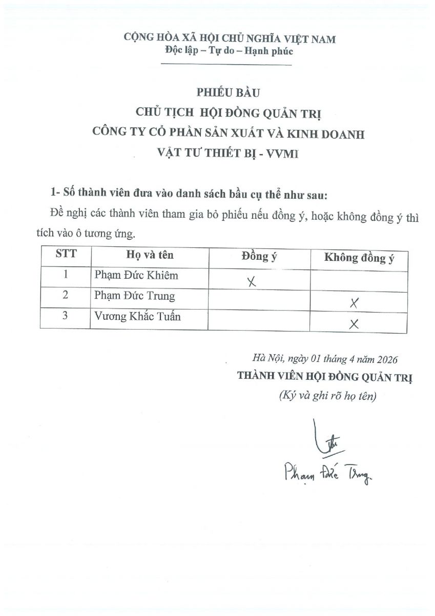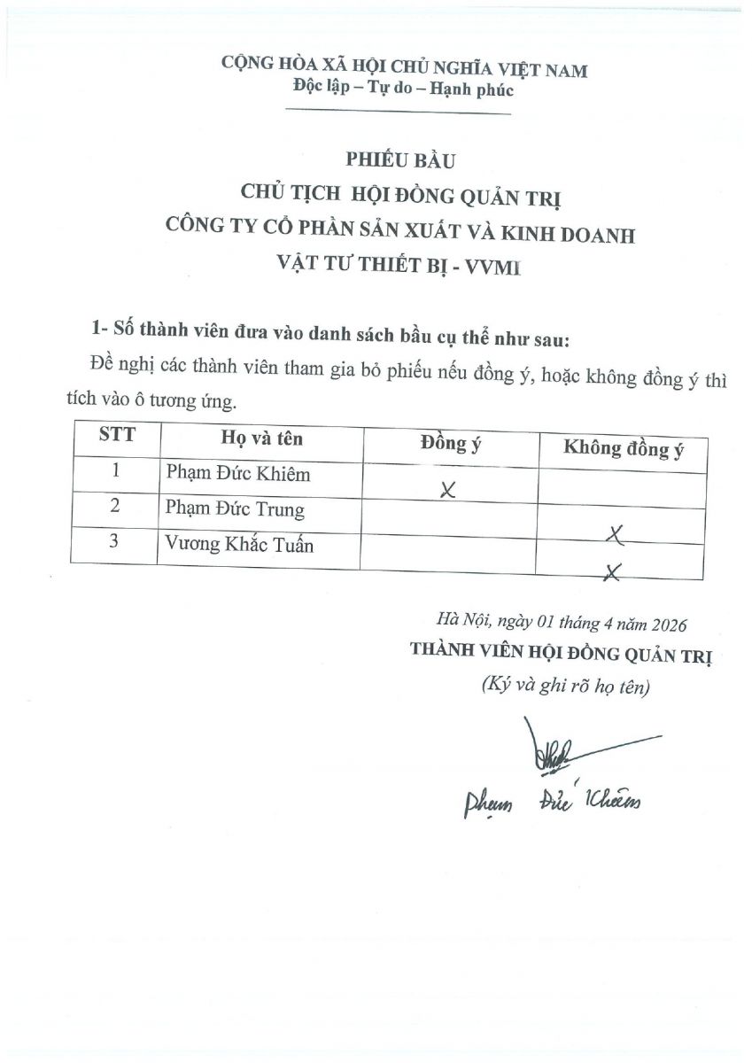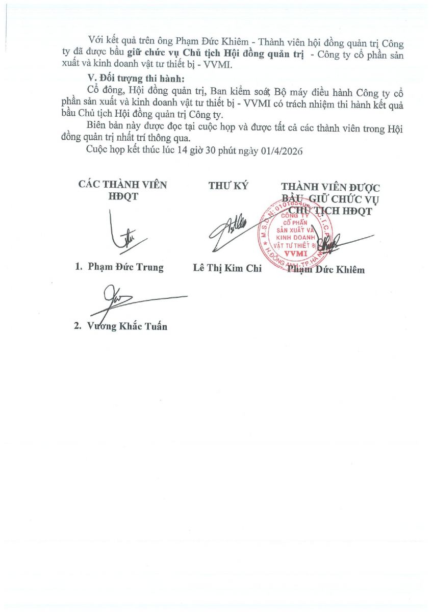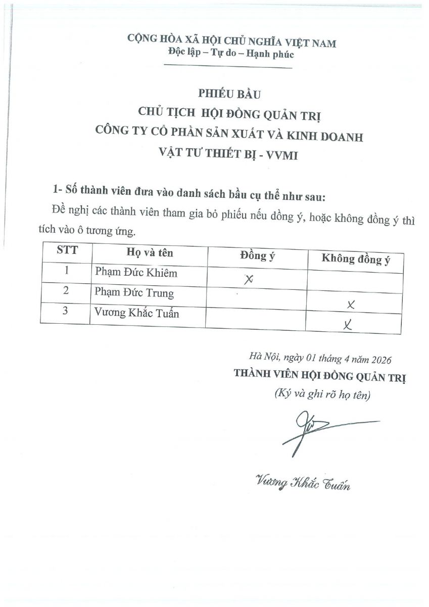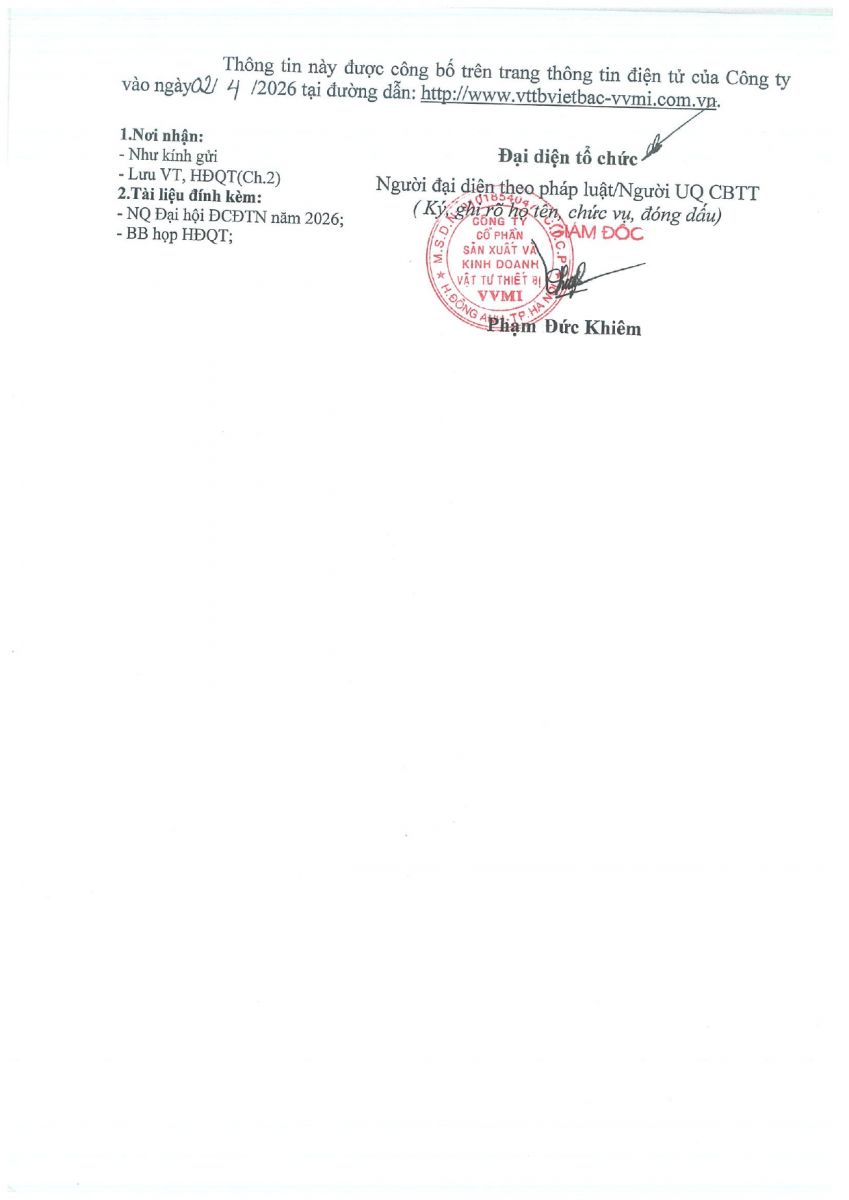 CBTT ( Ông VƯƠNG KHẮC TUẤN- TP KHVTTT được bổ nhiệm giữ chức vụ Phó GIám Đốc Cty CP SX và KD VTTB - VVMI kể từ ngày 16/8/2022 )