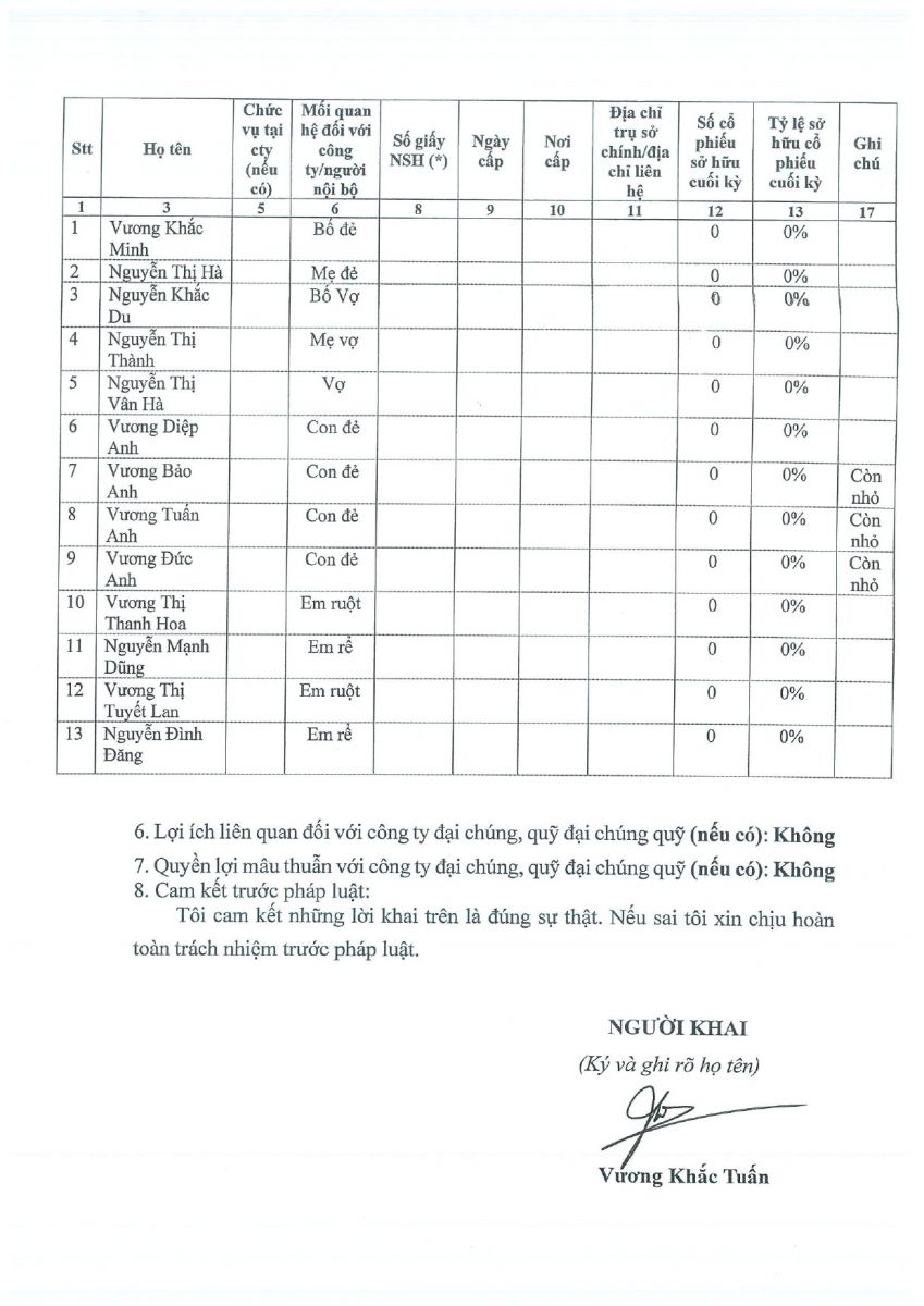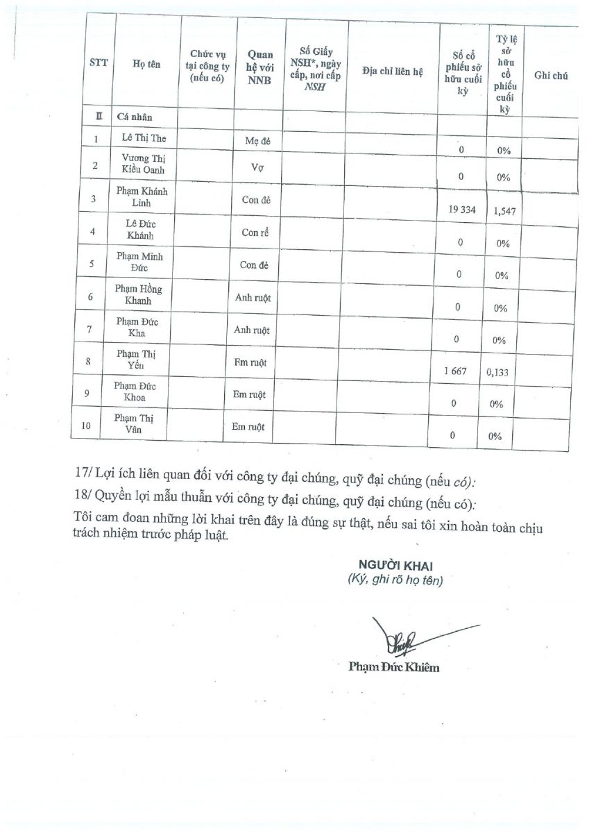 CBTT Danh sách cổ đông NN Cổ đông lớn tại thời điểm 6 Tháng cuối năm dương lịch 2023