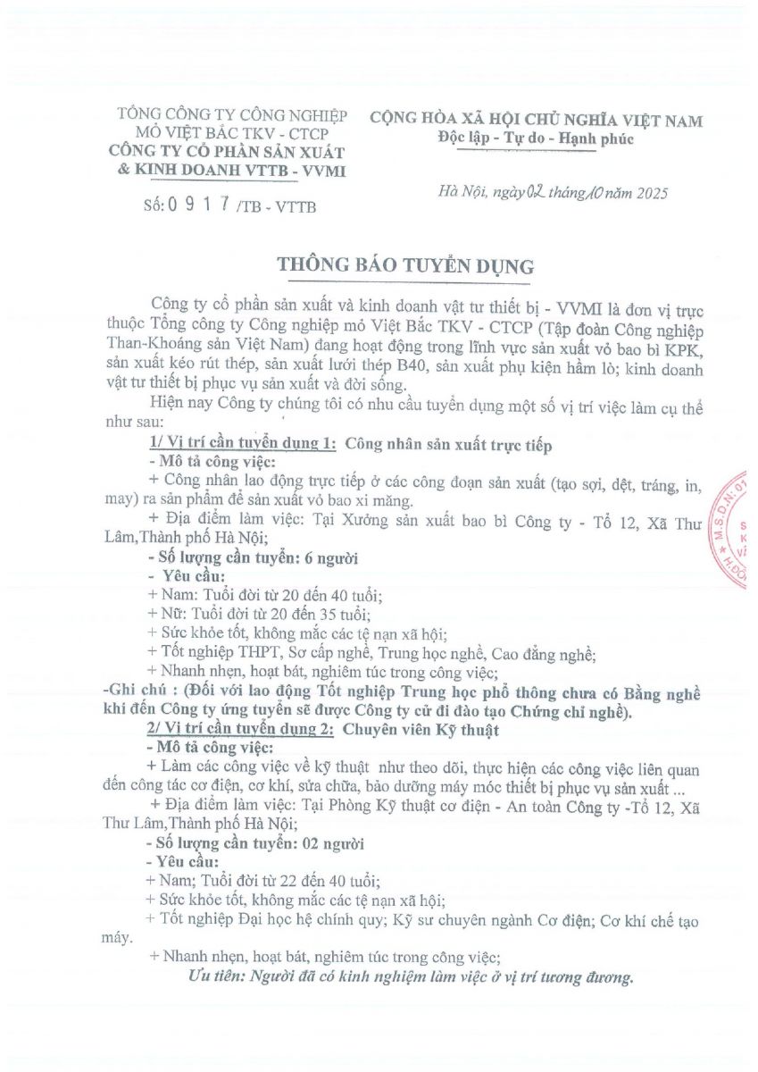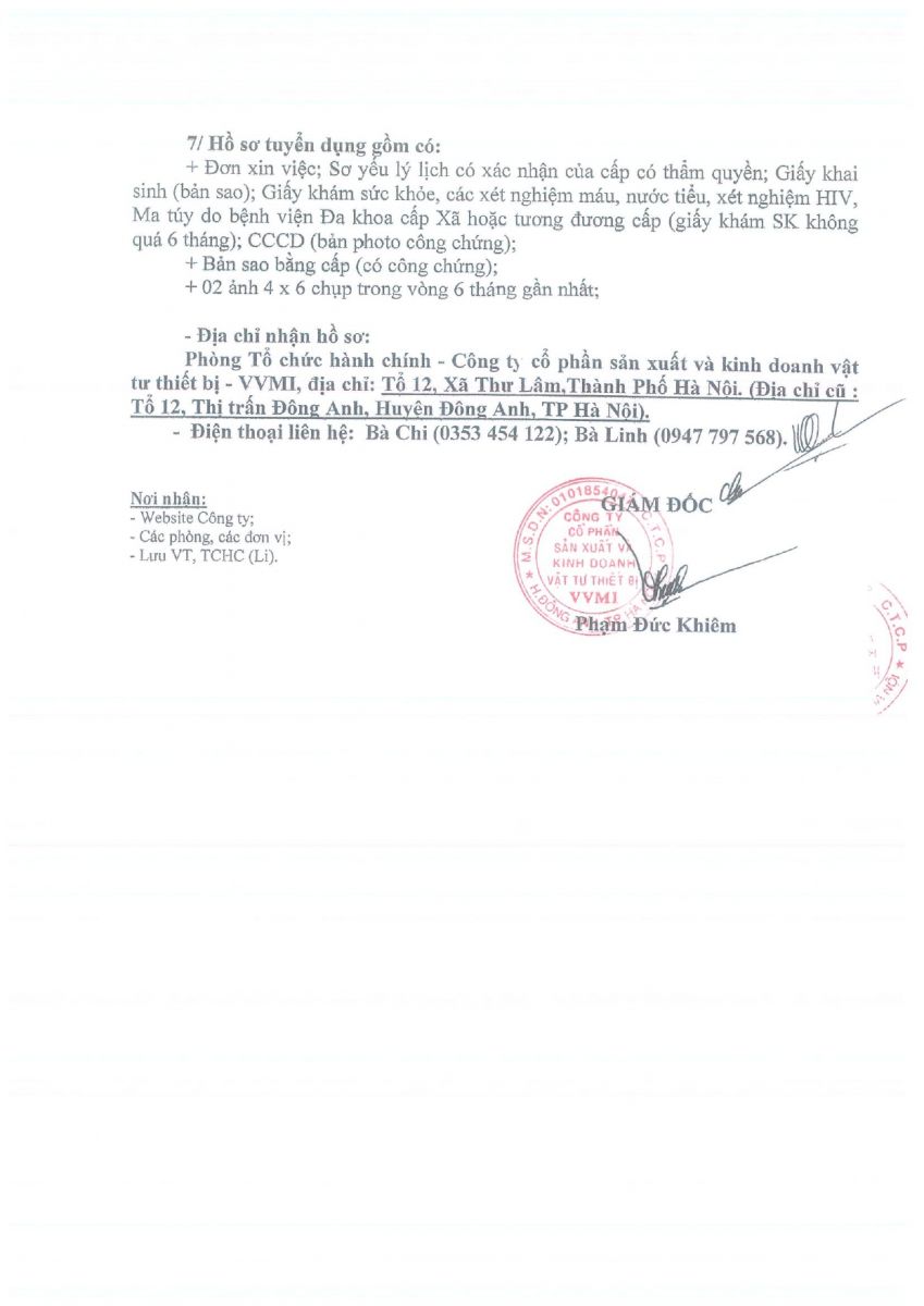 CBTT ( Ông VƯƠNG KHẮC TUẤN- TP KHVTTT được bổ nhiệm giữ chức vụ Phó GIám Đốc Cty CP SX và KD VTTB - VVMI kể từ ngày 16/8/2022 )