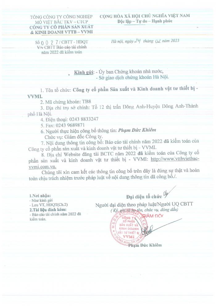 CBTT ( Báo cáo tài chính năm 2022 đã kiểm toán)