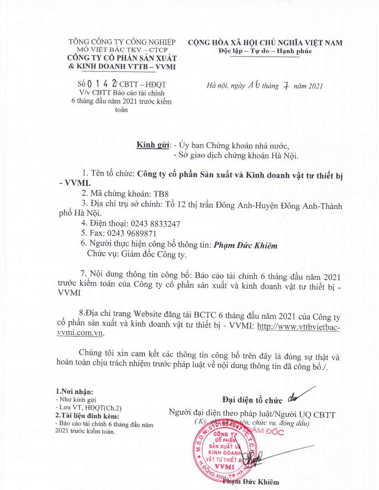 Công bố thông tin ( Báo cáo tài chính 6 tháng đầu năm 2021 trước kiểm toán )