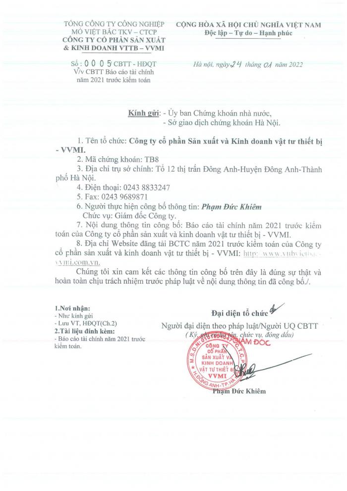 CBTT ( Báo Cáo tài chính năm 2021 trước kiểm toán )