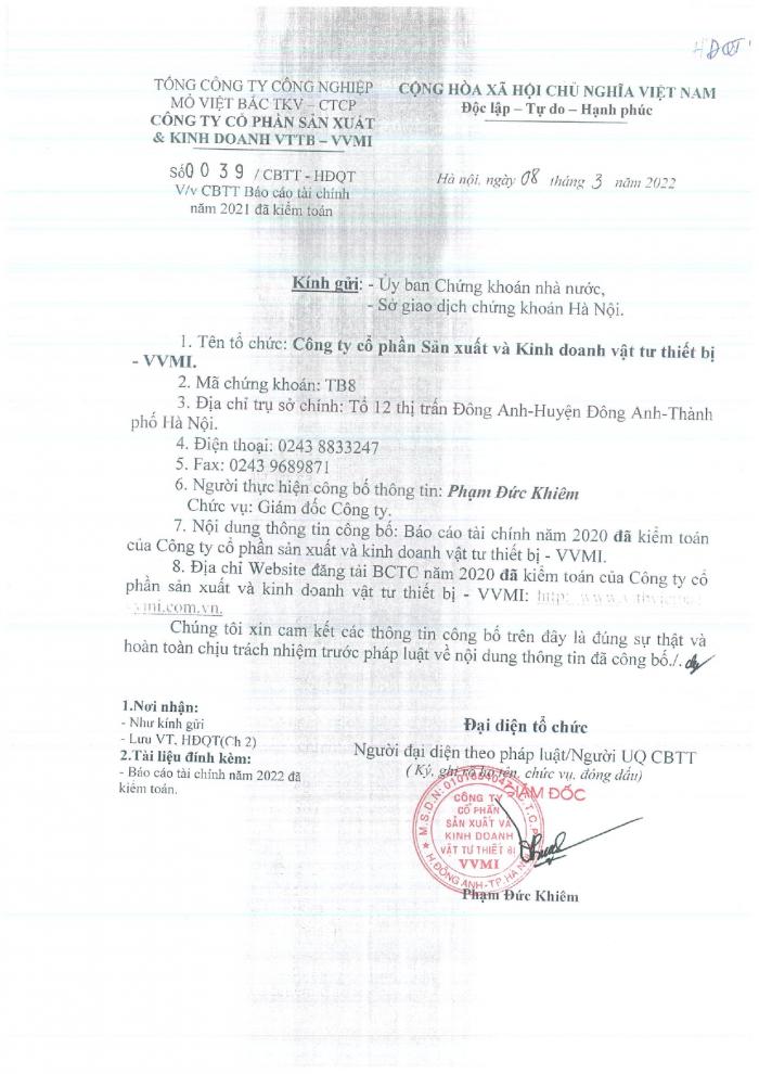 CBTT ( Báo cáo tài chính năm 2021 sau kiểm toán )