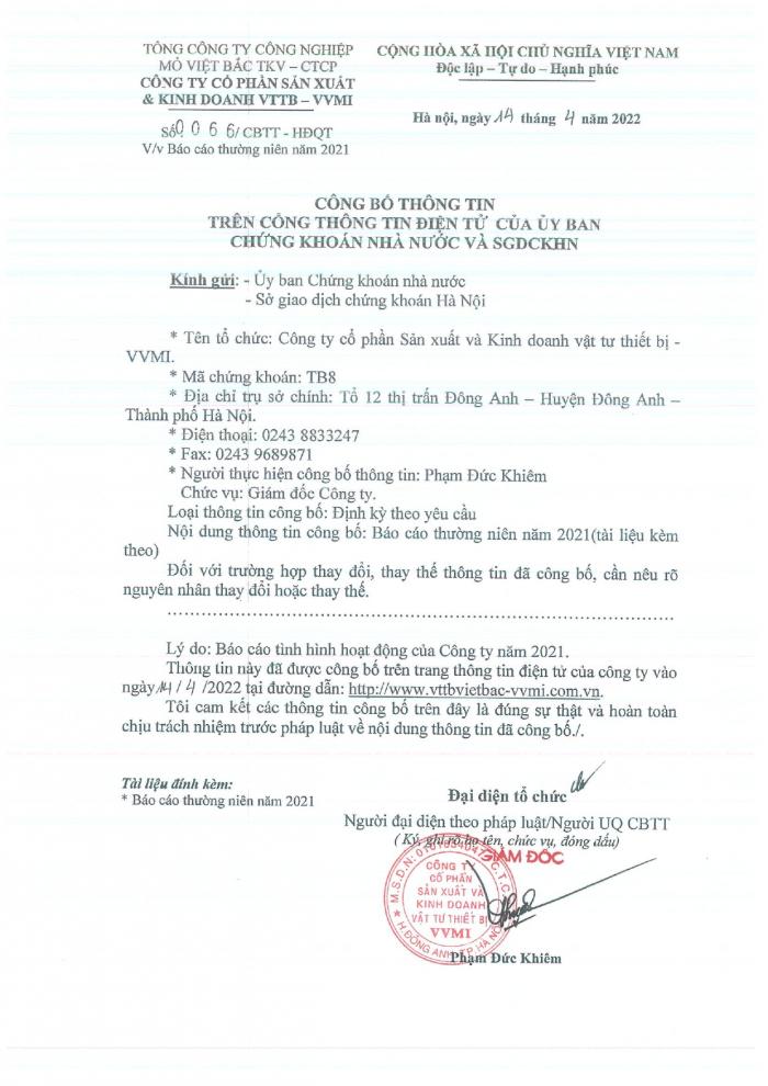 CBTT ( báo cáo thường niên năm 2021 - có tài liệu kèm theo )