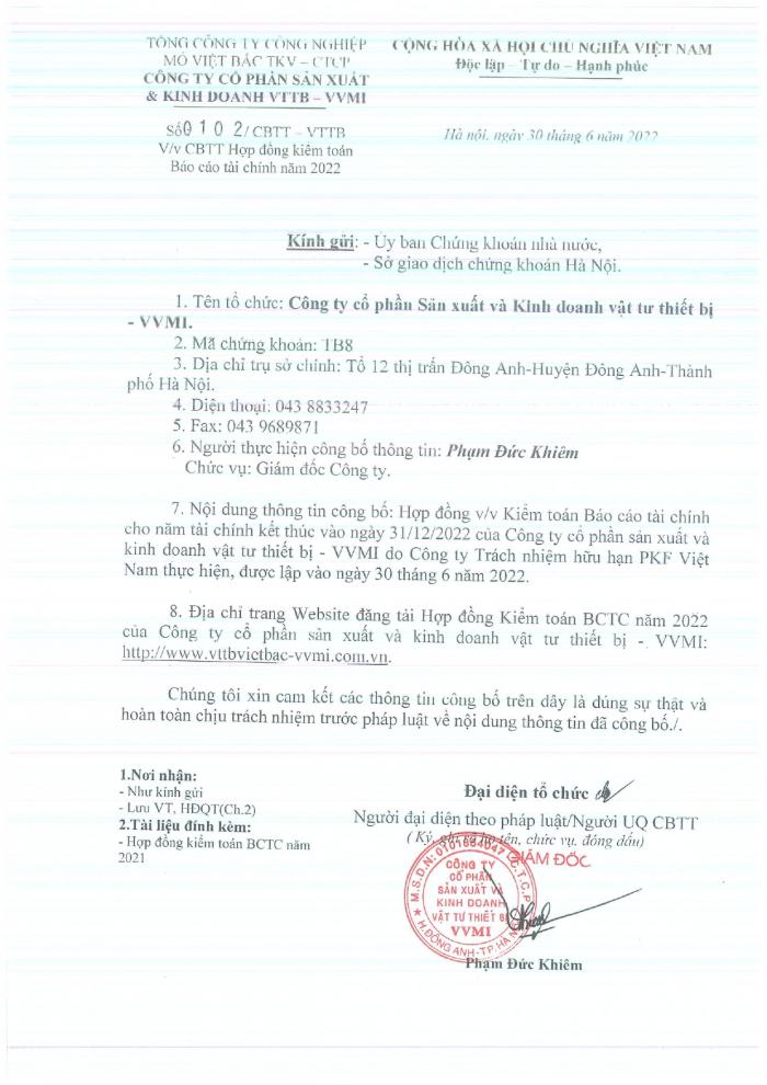 CBTT ( Hợp đồng kiểm toán Báo cáo tài chính năm 2022)