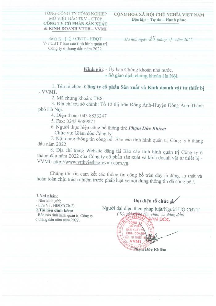 CBTT ( báo cáo tình hình quản trị cty 6 tháng đầu năm 2022 )
