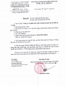 Công bố thông tin báo cáo tình hình quản trị Công ty 6 tháng đầu năm 2018