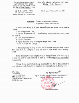 Công bố thông tin ( Báo cáo tài chính năm 2018 đã kiểm toán )