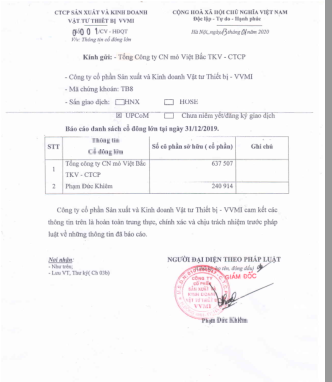 V/v CBTT Danh sách cổ đông NN Cổ đông lớn, tại thời điểm 6 tháng đầu năm dương lịch 2018